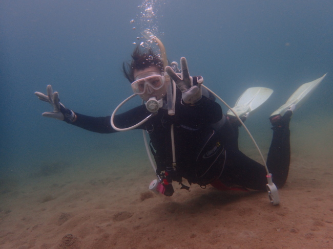 梅雨空の下でオープンウォーターダイバーコース開催。