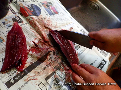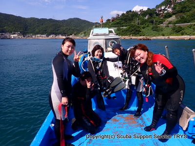 2018-07-03 ファンダイビング&リフレッシュコース new器材おろしダイブのMさんとAさんのお二人と そしてフォトダイブに夢中のSさんと 5年のブランクを解消するためにお越しいただいたNさん 5名のレディースメンバーでファンダイビング!! 台風の影響で若干ウネリが伴う水中でしたが フォトダイブ&リフレッシュダイブを楽しみました! 終了後は、漁師さんからいただいた捕れたてホヤホヤのサバ 新鮮なうちに捌いて刺身に。 美味しく頂いちゃいました~♫