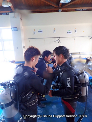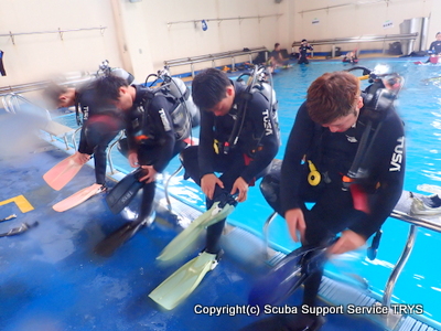 2018-07-05 学生たちの実習 台風の影響がある中、学生達の実習がスタート 海の様子を見ながら結局プールへ移動 バディチェックを済ませ バックロールエントリーの準備 海洋実習は濁濁の中でしたが 念入りにバディチェクしてエントリー 濁濁でも、なんだか楽しみながら実習終了!! ヤッコエイや、マダイをみてウキウキ気分の学生たちでした! 砂まみれの器材をしっかり洗浄 次回、夏休みの海は、いいコンディションであることを祈って待ってま~す!!