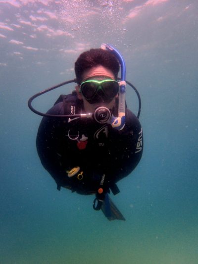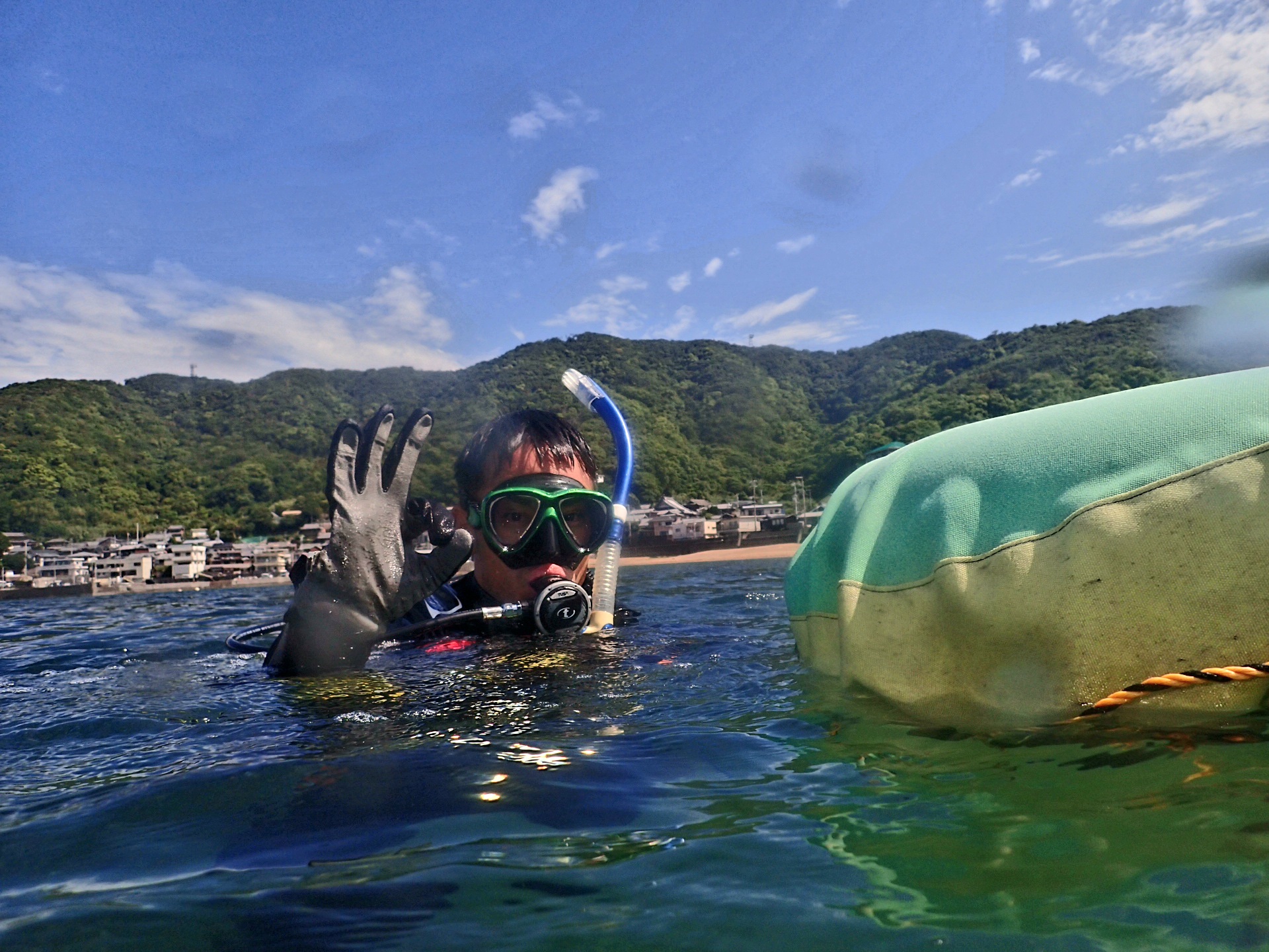 2024-06-13 快晴の中、ダイバーデビュー 2日間共にお天気も海もよい中、ライセンス取得コースを開催。 慣れない口呼吸に戸惑うこともありましたが さすがタイチョーさん、無事ダイバーデビューしました。 ここからスタートです! 防災と同じく、常に心がけながら潜っていきましょう!