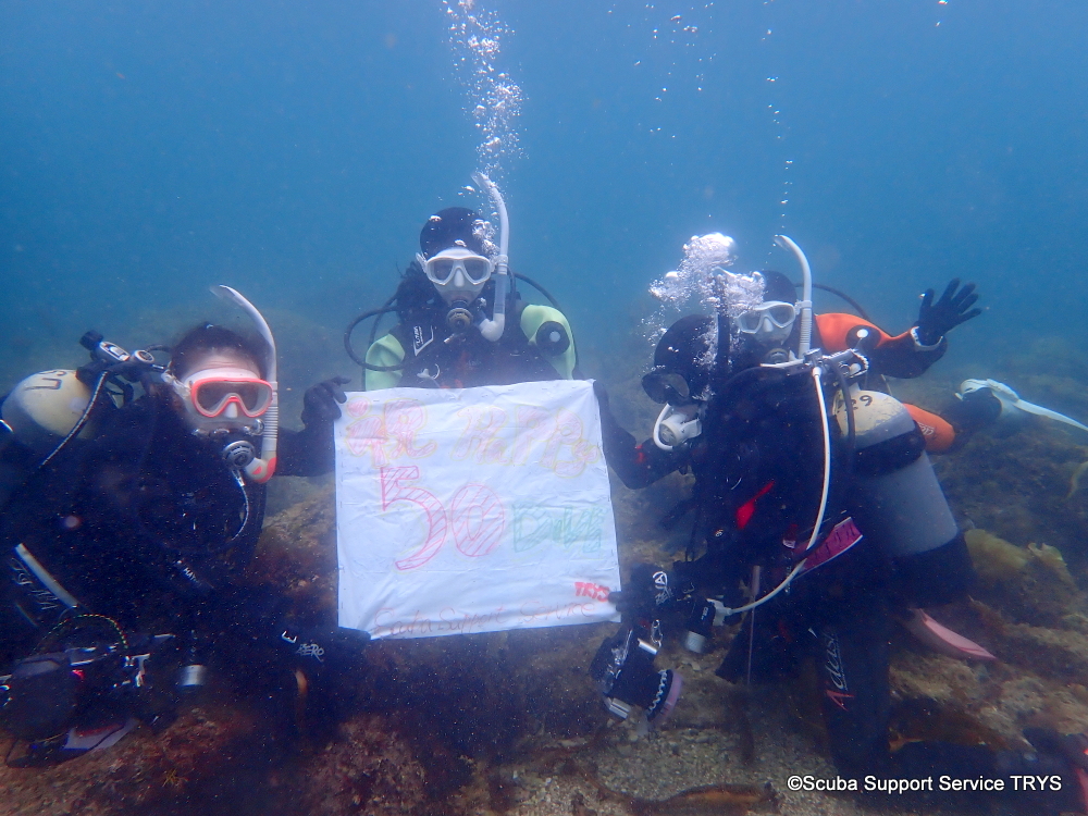 2024-06-15 メモリアルダイブ! 生憎の曇空ですが、海は超ベタ凪で透明度もそこそこ見えていい感じです! シャクシの浜も、ハブガタも、大引ビーチも大盛況! ダイバーデビューして約8ヶ月のNさん。 今回50ダイブを迎えました! 鼻呼吸で最初はくじけそうになったり、 浮力コントロールがうまくいかず、何度も何度も練習したり 色々レッスンしてきましたが、今では立派なダイバーです!! これからも、もっともっと楽しんでいきましょう!