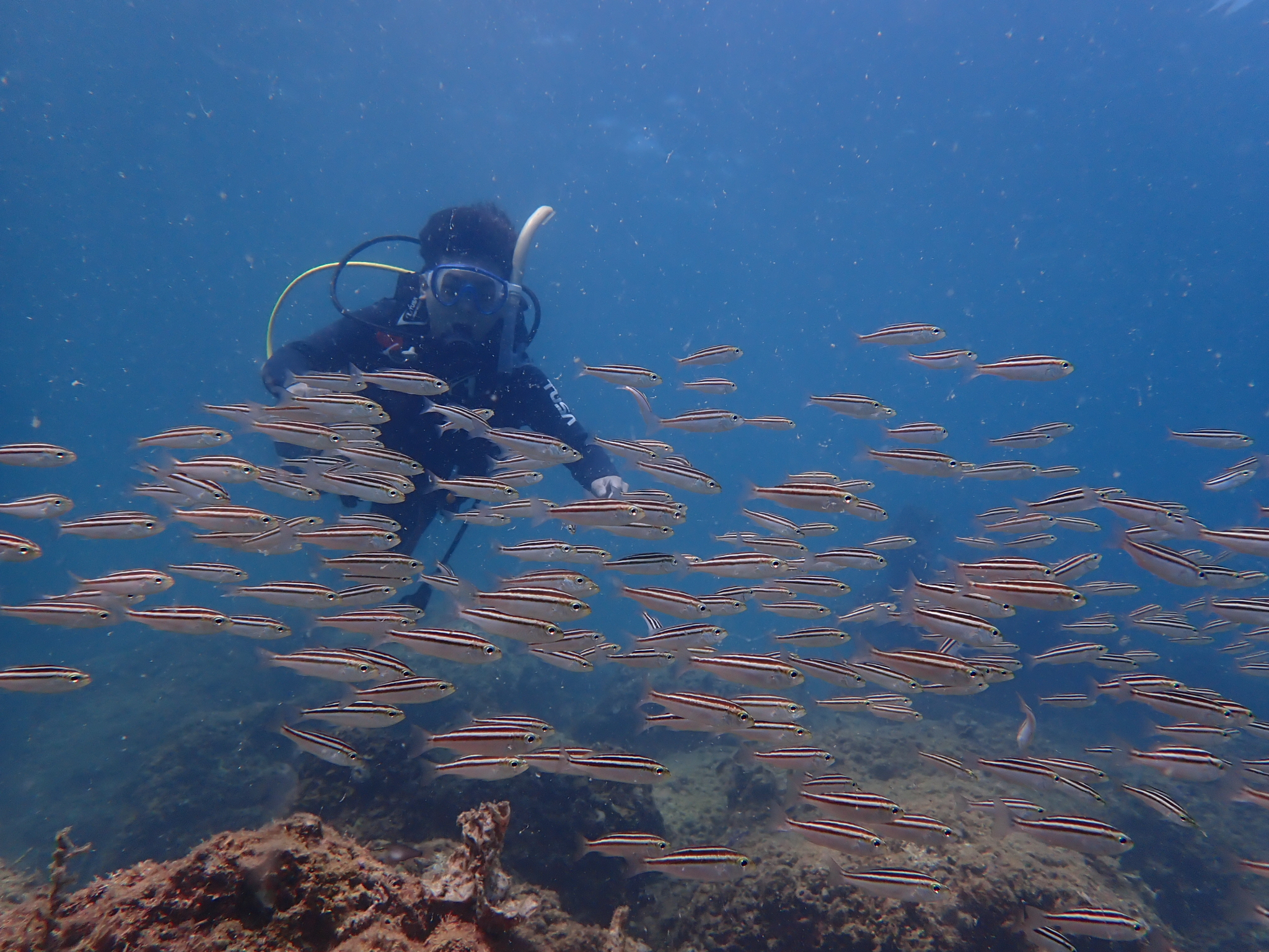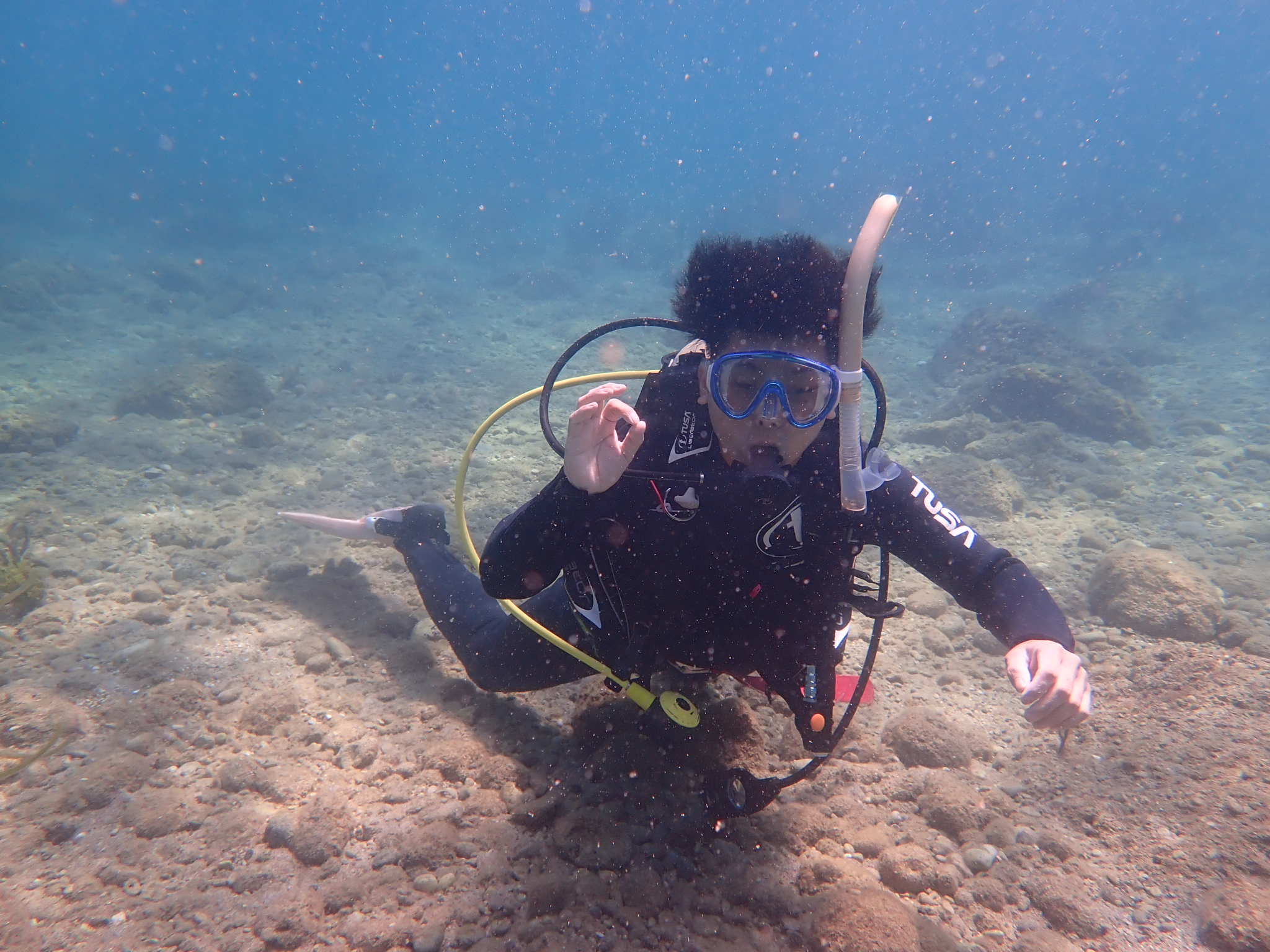 2024-08-10 間が空いてしまったら復習ダイビング! 1年前にライセンス取得しただけで、潜らず・・・となってしまったMさん 1年ぶりにダイビングを再開するために、復習ダイビングに参加! 器材セッティングの思い出しや、マスククリア、レギュレターリカバリーなど 基本スキルを浅瀬で思い出し練習! そのあと、水中ツアーへ行ってきました! 水温、透明度ともに良い状態が続き、生物も豊富でワイド目線が楽しい水中です!
