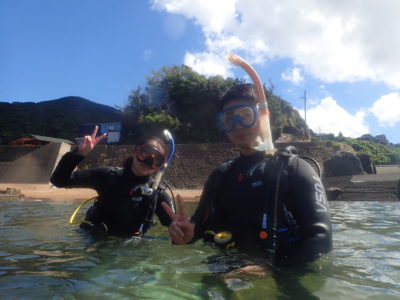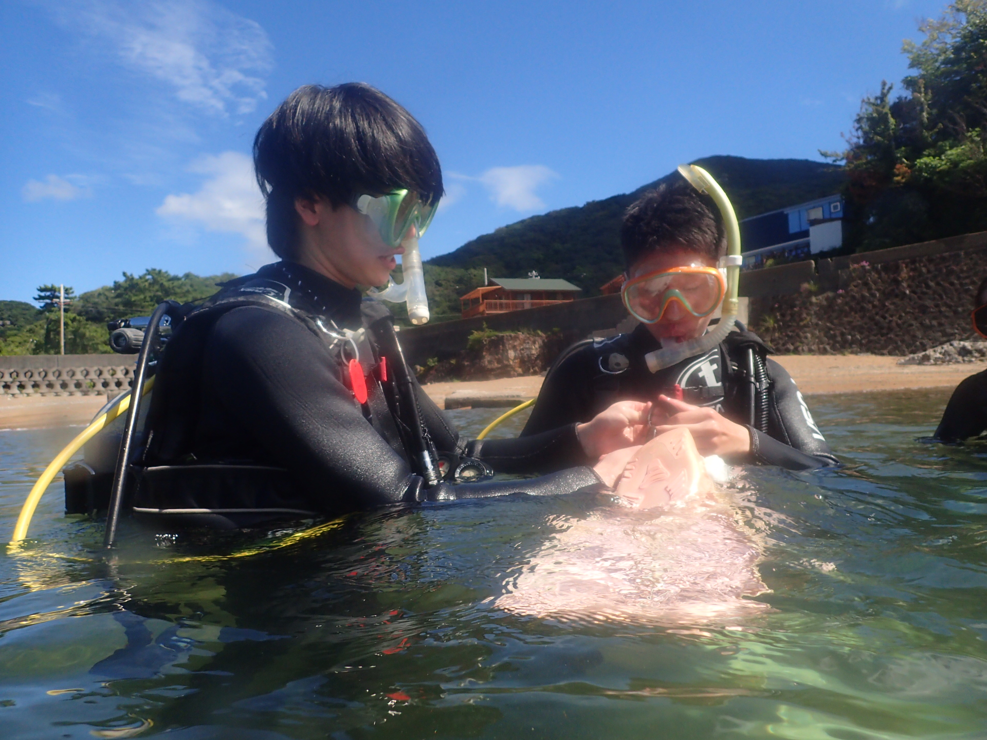2024-09-14 友達と一緒にCカード取得コース! 台風の影響でウネリが気になる中でしたが みなさん、頑張ってくれましたー! ご紹介で滋賀県からお越しのYさんとKさん 体験ダイビングでご参加いただいたのち、御夫婦でCカード取得にご参加のS御夫妻。 濁りとウネリに負けず、がんばりました! まだまだ、これからスタートです! 楽しんでいきましょう!
