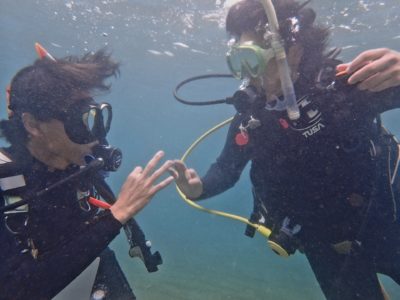 2024-10-24 学生ダイバーcカード取得を目指すっ! 現役大学生インストラクターが教えるcカード取得コース! 大学生同士、和気あいあいと講習スタート! 笑顔が絶えない講習で、雰囲気がとてもいいですね! ダイバーデビューして、インドネシアで潜る!目標、二人で叶えてくださいねー!