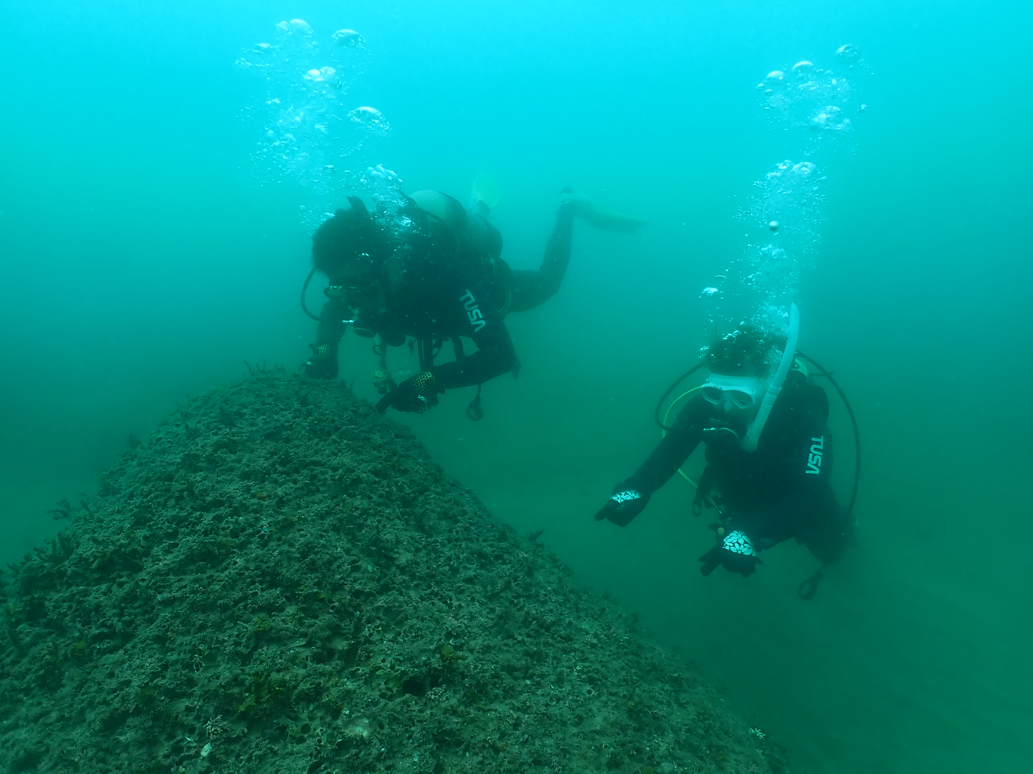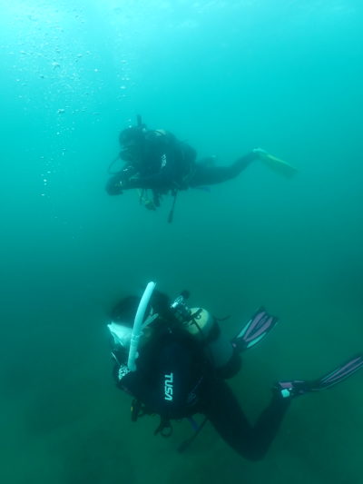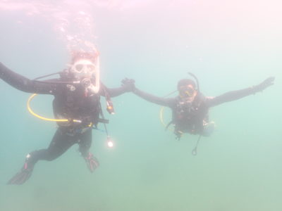 ダイビングをするために、もっとも重要なスキル「中性浮力」を身に付けるために参加のお二人。