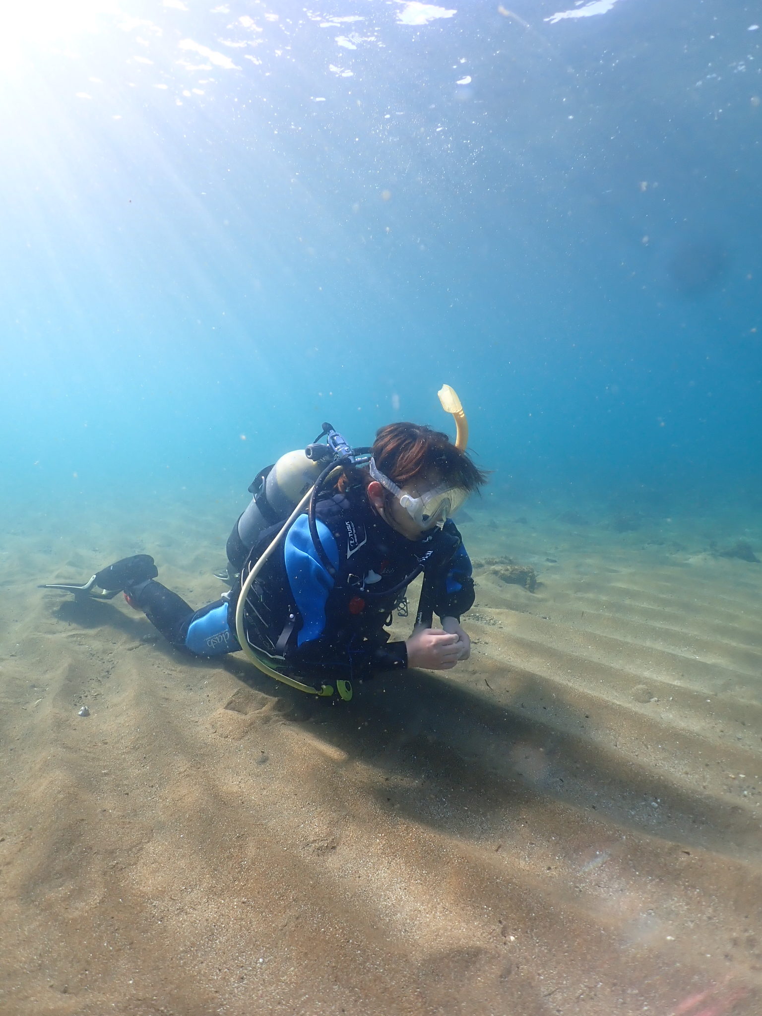 2024-12-01 ドライスーツモニターダイビング 昨日予定していたnさん ドライスーツモニターダイビングに参加で、 ドライスーツの使い方や、緊急時の練習などもビーチでおこなってから ボートでファンダイビング! 中性浮力を練習中のnさん ドライスーツを上手に使いこなせるようになると、 もっと楽に潜れるようになるので、 次回は中性浮力コースですね! 水温19-20℃、透明度5-8m