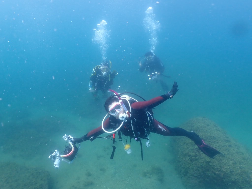 2025-08-25 初めてのファンダイビングとフォトダイビング♪ 約2週間前にオープンウォーターダイバーになったばかりのT様と 初めてのフォトダイビングに挑戦のT様と、いつもご利用いただくMさんSさん 絶好のダイビング日和の週末ダイブを楽しんでいただきましたー! マクロもワイドも楽しい水中ですよ。 水温28℃、透視度8mくらいかな。