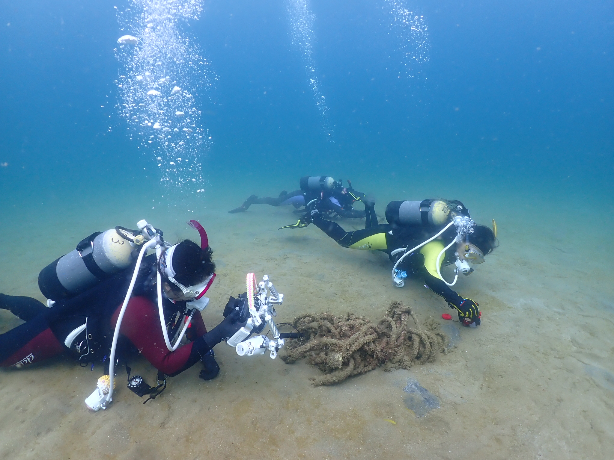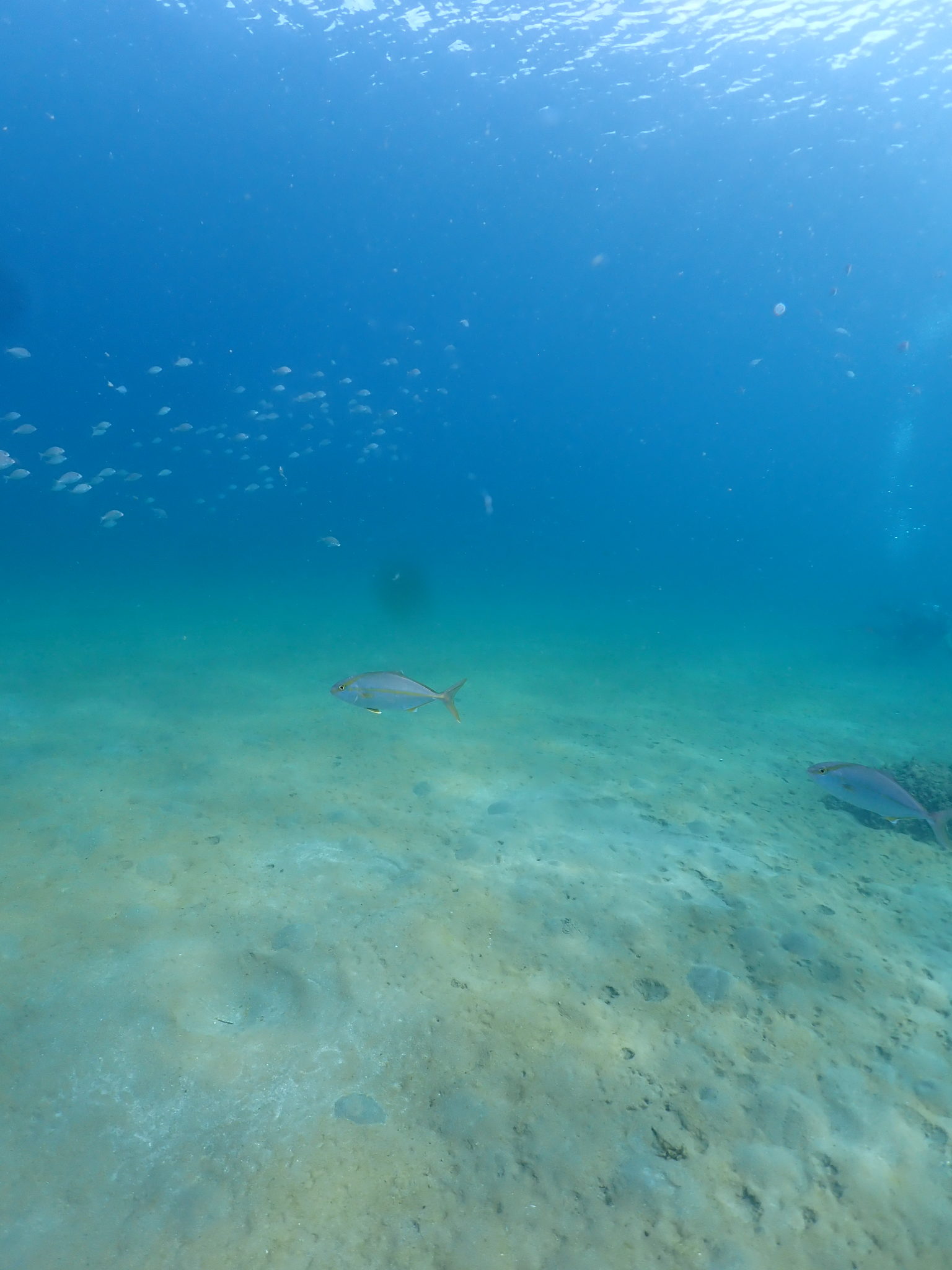 2025-09-20 めっちゃ青い海♬ ハブガタでフォトダイブを満喫♬ 海は青くて水温も快適! カンパチが子魚の群れにアタックするシーンなども観察できました。 じっくり水中撮影に集中したダイビングとなりました! 水温24℃、透視度15m以上かな。