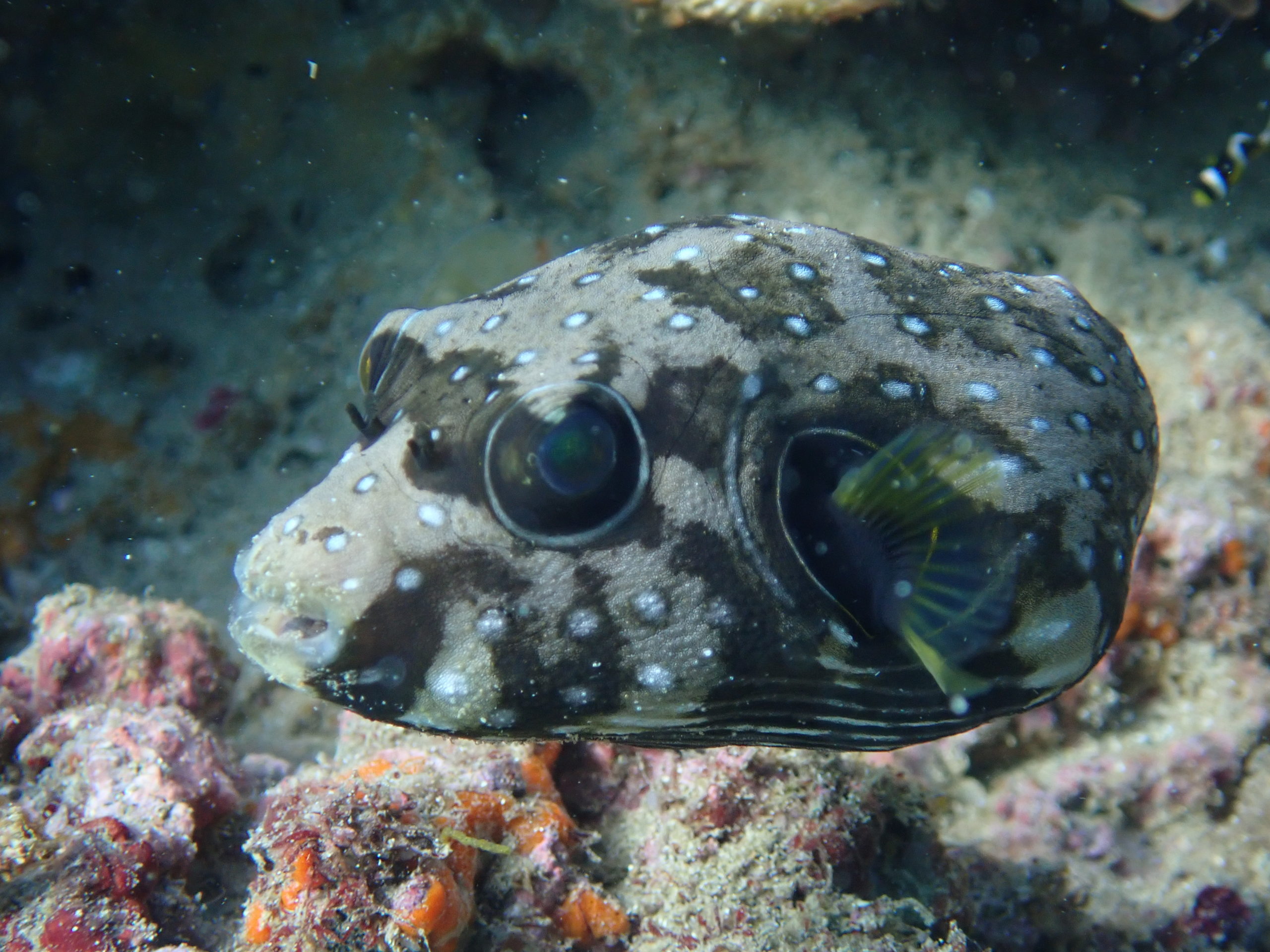そんな赤潮発生中の白崎海域では、珍しいサザナミフグに出会えています!