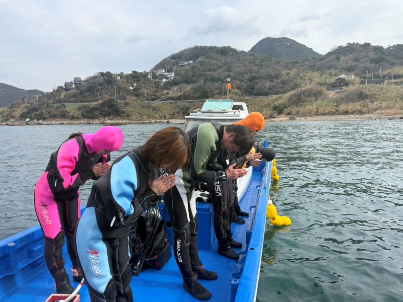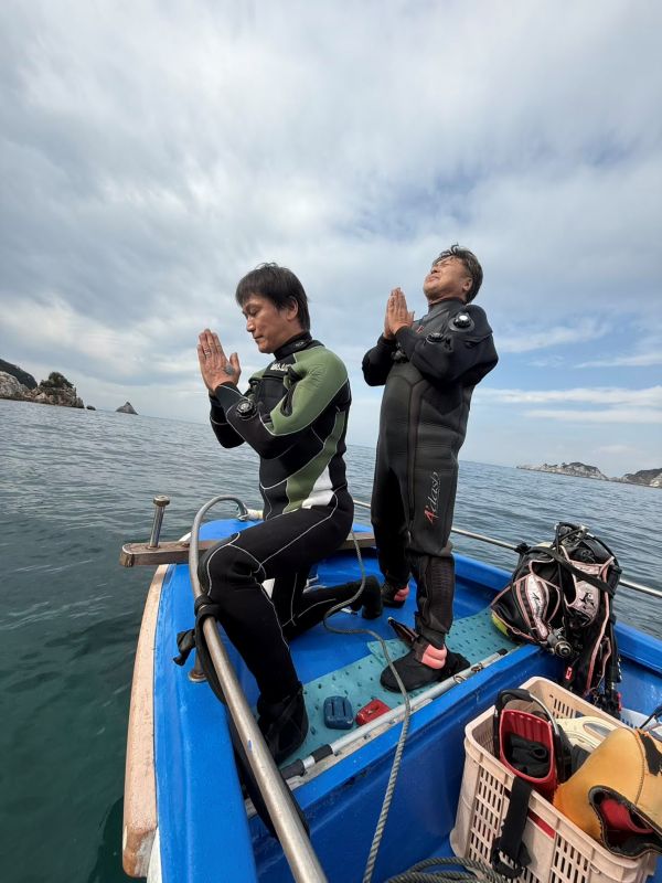 2026-01-09 2026年安全を祈願して初潜り☆ あけましておめでとうございます 本年もよろしくお願い申し上げます。 新年、一発目のダイビングは LUV K RAFT(らぶくらふと)の皆さんが 先日、初潜りにお越しいただきました~! 1年の安全を祈願して、海と器材をお酒で清めてからエントリーしてきました。 今年もスタートしました! 皆さま、今年もよろしくお願いいたします!! 水温16℃、透明度10m弱