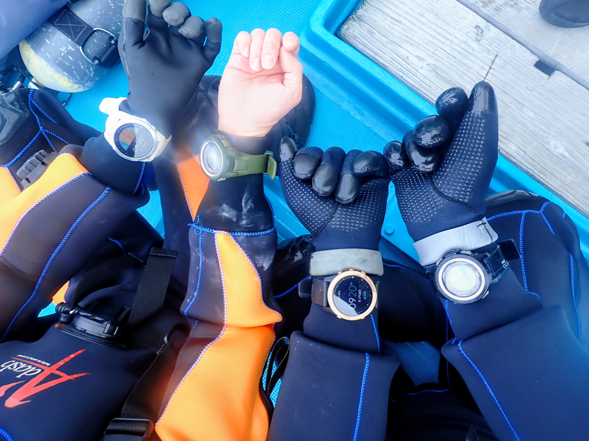 実際に水中で減圧不要限界をコンピューターで確認しながら